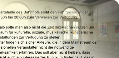 Die Wartehalle des Bahnhofs steht den Fahrgästen in der Zeit